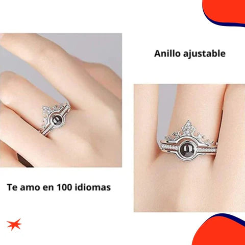 El ANILLO Ajustable se adapta a tu dedo, no importa la talla 🌟El Cristal Micro grabado: "TE AMO" en 100 idiomas distintos 🌍Diseño Elegante y Sobrio: Llamativo y cómodo 💎Caja de corazón Perfecto para sorprender 🎁