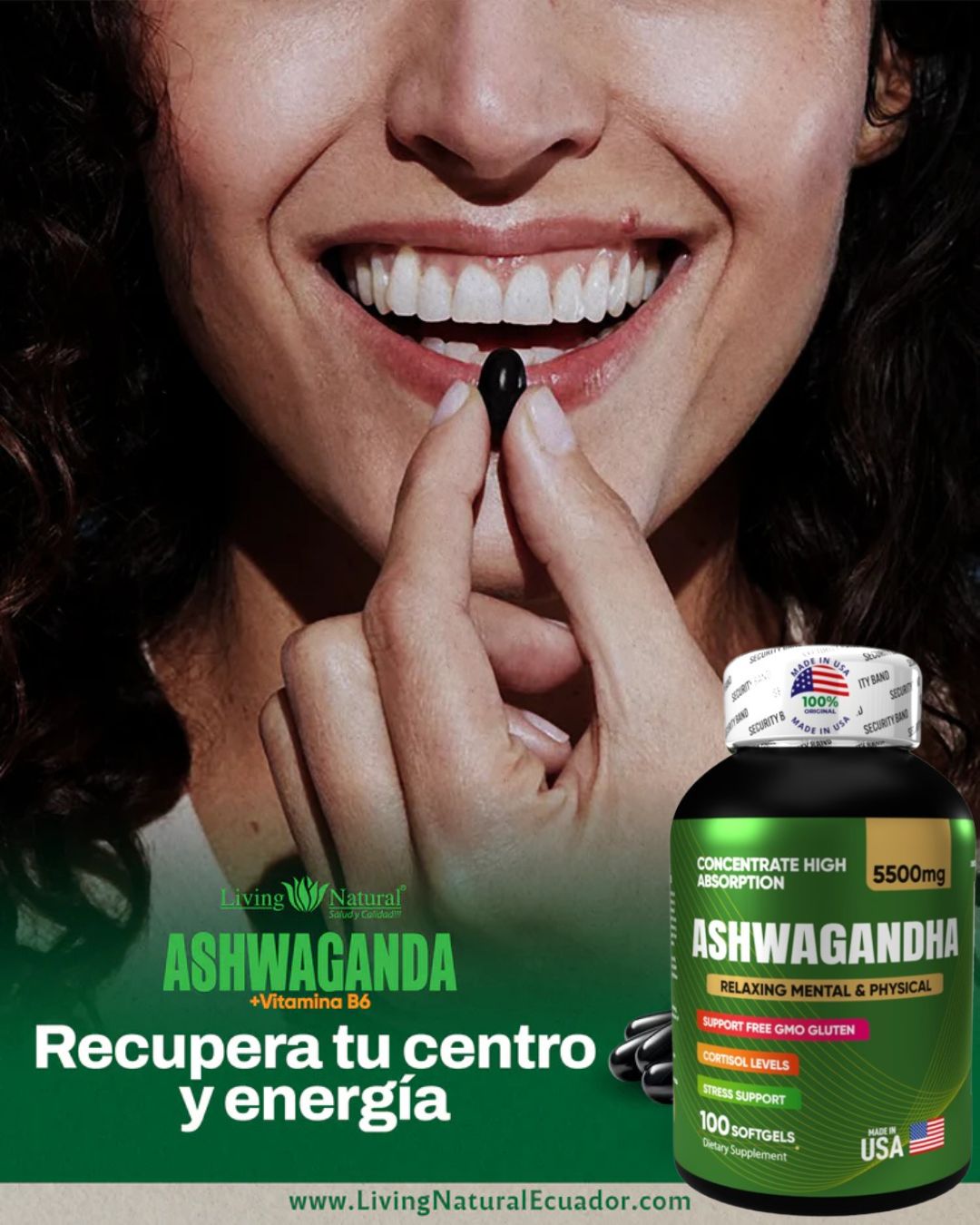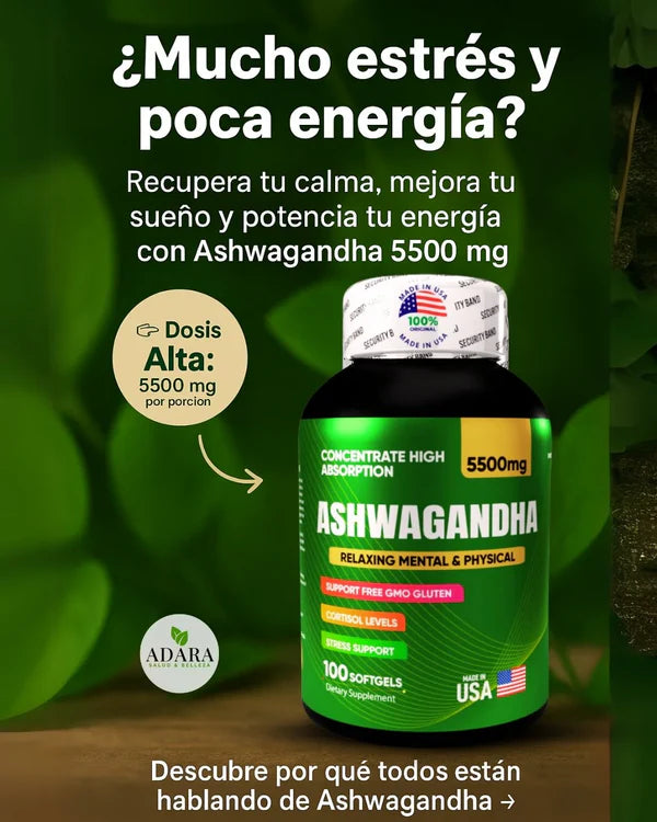 ASHWAGANDHA AMERICANO | ALTA CONCENTRACIÓN | 5500 mg | 100 Cápsulas Paga 1 lleva 2