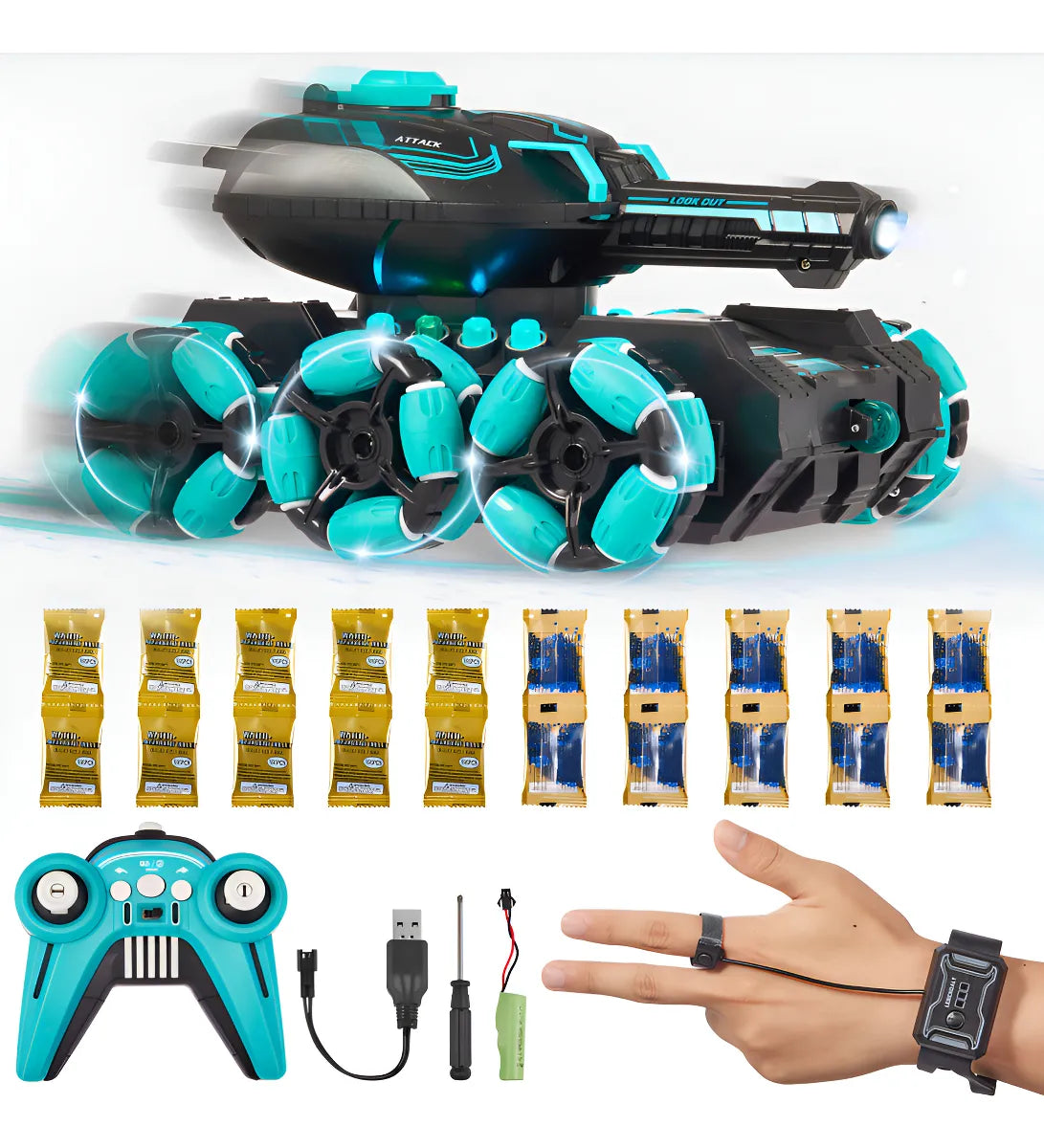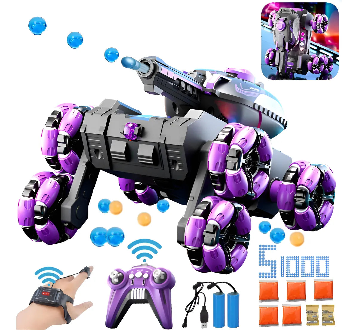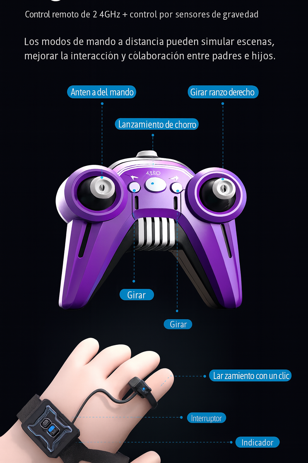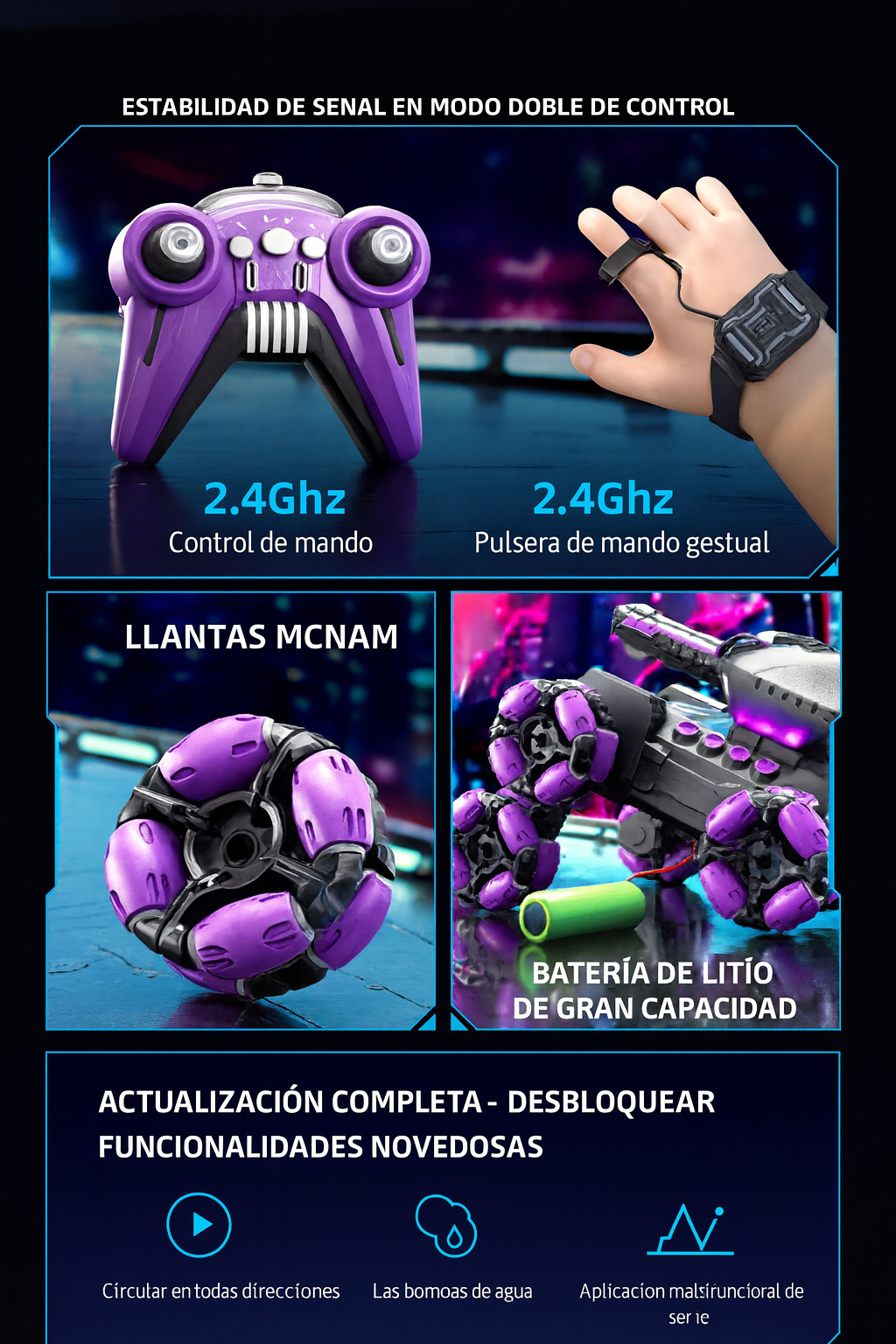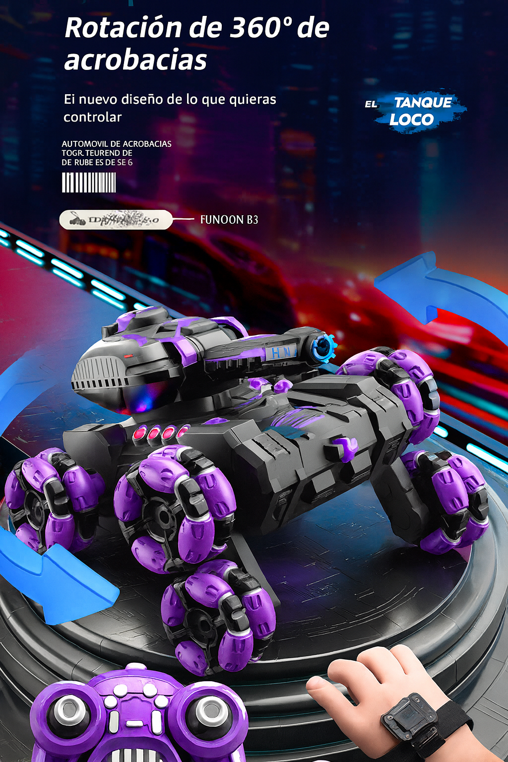 CARRO STUNT ACROBATICO RC 6 RUEDAS Con Lanzador De Balas Y 2 Baterías