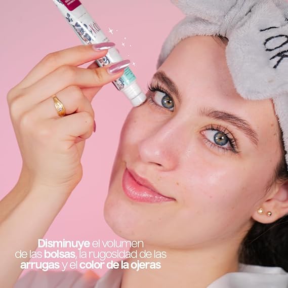 ¡El Contorno de Ojos Kaba Con su fórmula enriquecida con ácido hialurónico y vitamina C, reduce visiblemente las bolsas, aclara el color y suaviza la piel alrededor de los ojos.
