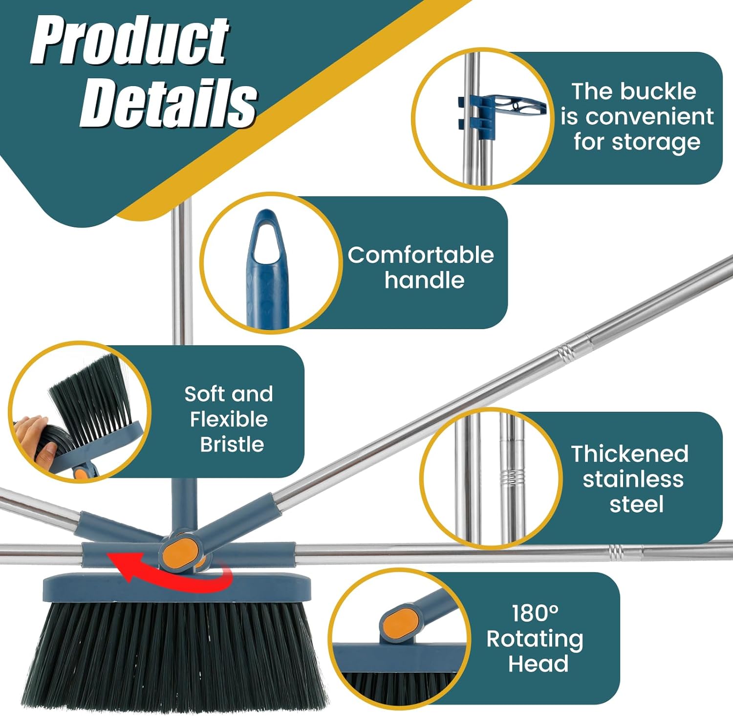 Juego de escoba Cepillo y recogedor magnético plegable giratorio 3 en 1 con cerdas súper gruesas