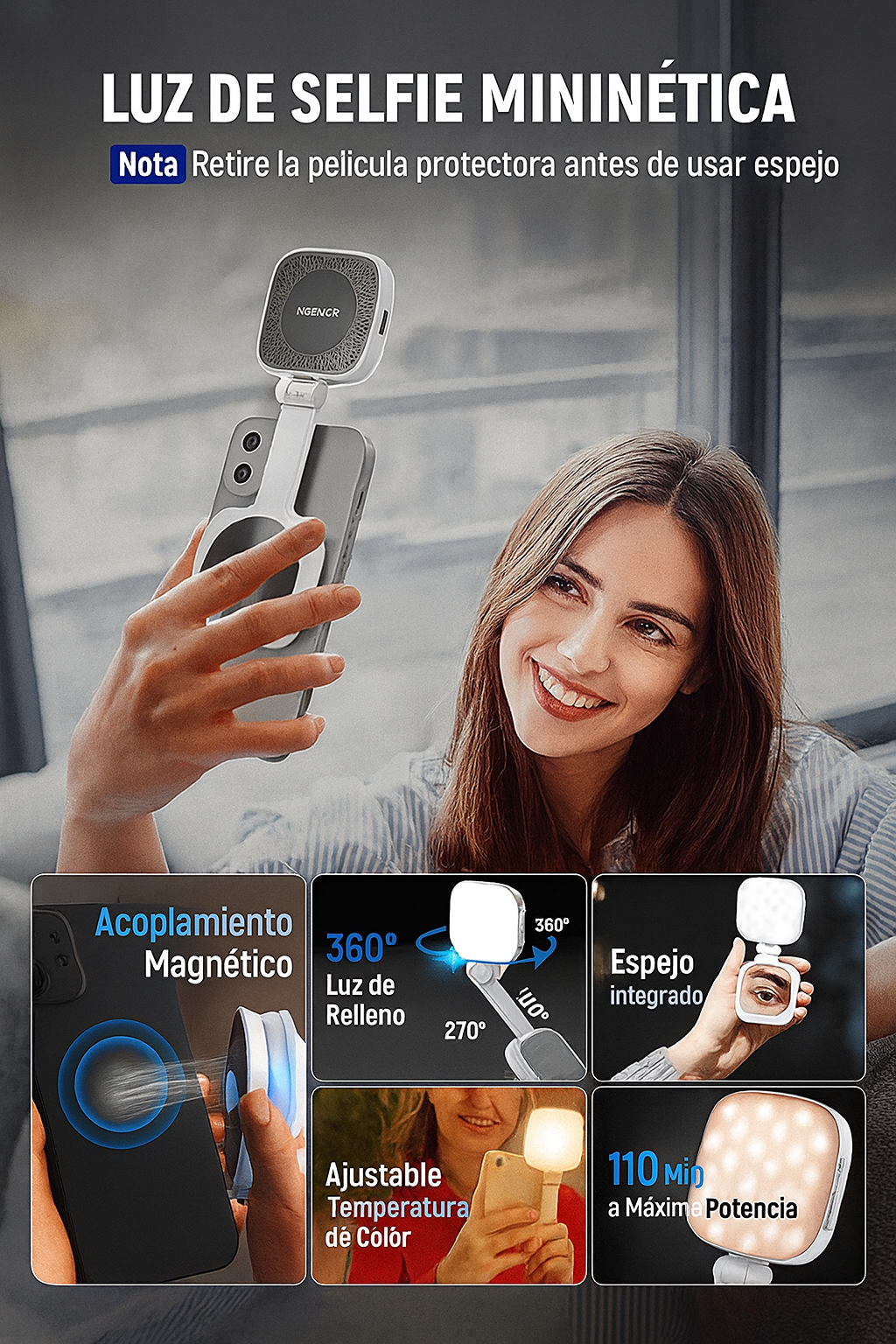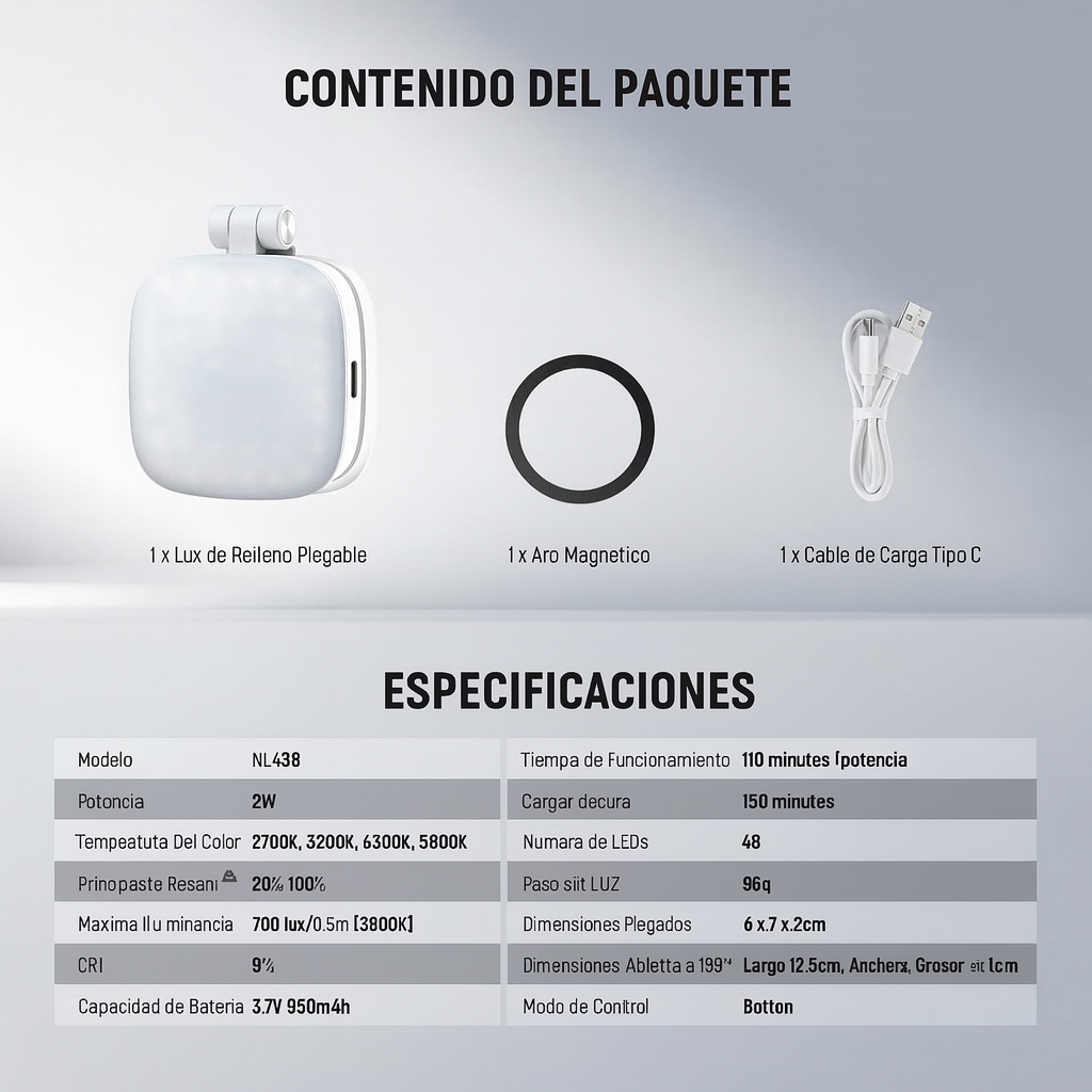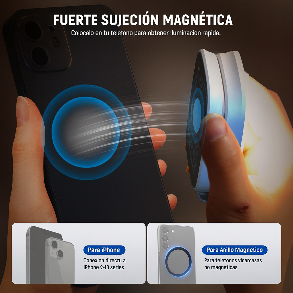 Cansado de que tus deliciosas comidas o tus mejores selfies se vean planos? La luz de estudio es la diferencia. Este accesorio compacto y magnético te da iluminación perfecta en segundos. Mira cómo cambia tu feed.