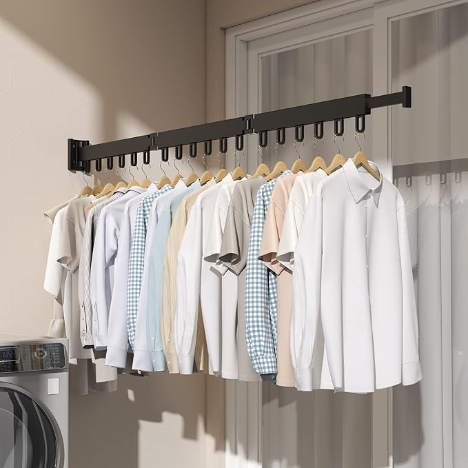 ¡Libérate al instante con el Tendedero 360° Extensible, la solución que multiplica tu espacio como por arte de magia! Sus 3 brazos retráctiles son como varitas mágicas que se adaptan a cualquier rincón, ¡incluso detrás de la puerta! Y cuando no lo necesites, ¡puf!, desaparece plegándose contra la pared.