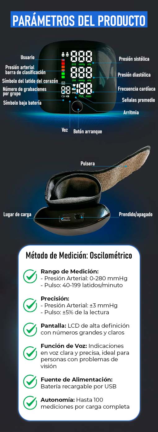 Deja de adivinar. Nuestro tensiómetro te da precisión médica y control total de tu salud cardiovascular. Monitorea presión y pulso, guarda registros ilimitados para dos y cárgalo por USB . Comodidad y paz mental al alcance de tu mano. Tu salud lo vale.